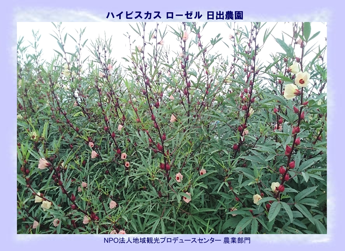 | NPO地域づくり観光/農業活性化:ローゼルの種からの栽培、商品化、販売まで。 協力:日出農園、宇佐農園 |