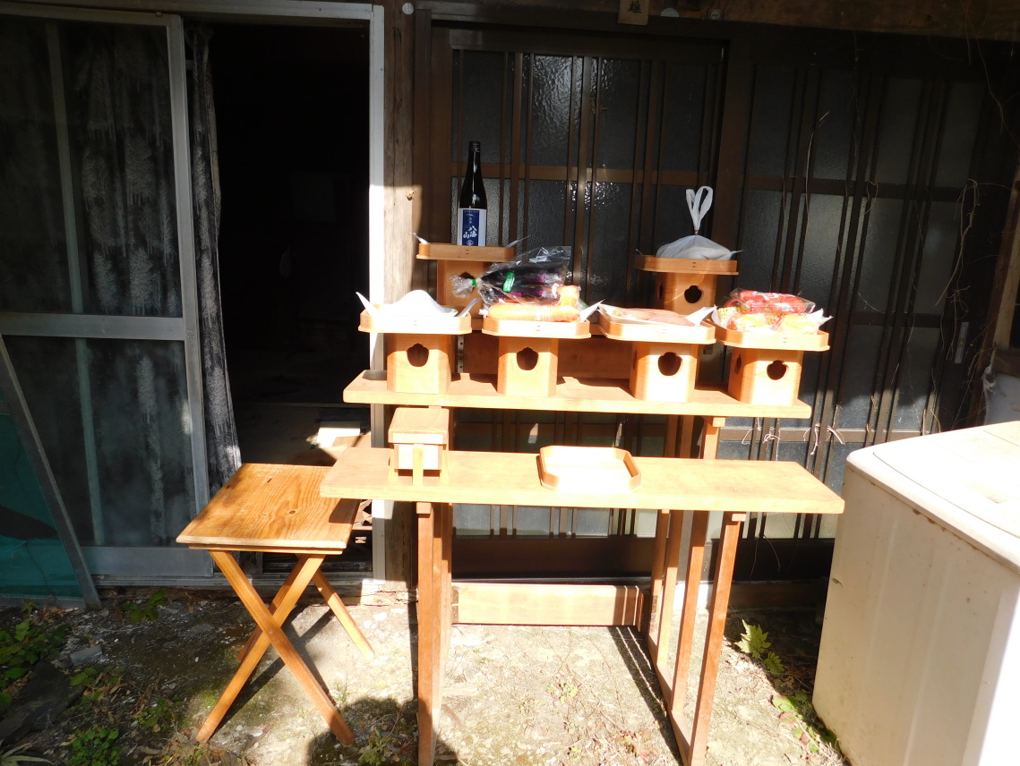 | お供え物:お酒 塩 米 山の幸 海の幸 野の幸 等 |