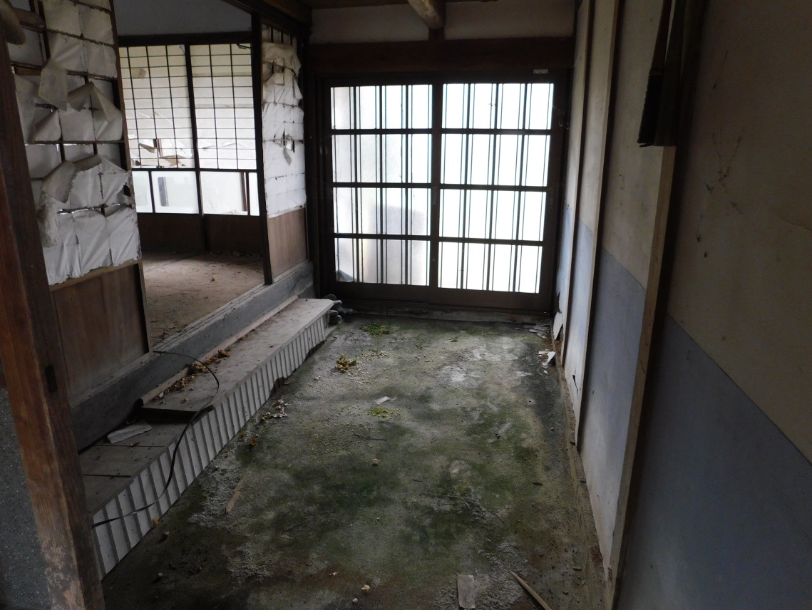 | 玄関 土間(上にテニスラケット) 八畳 広間 |