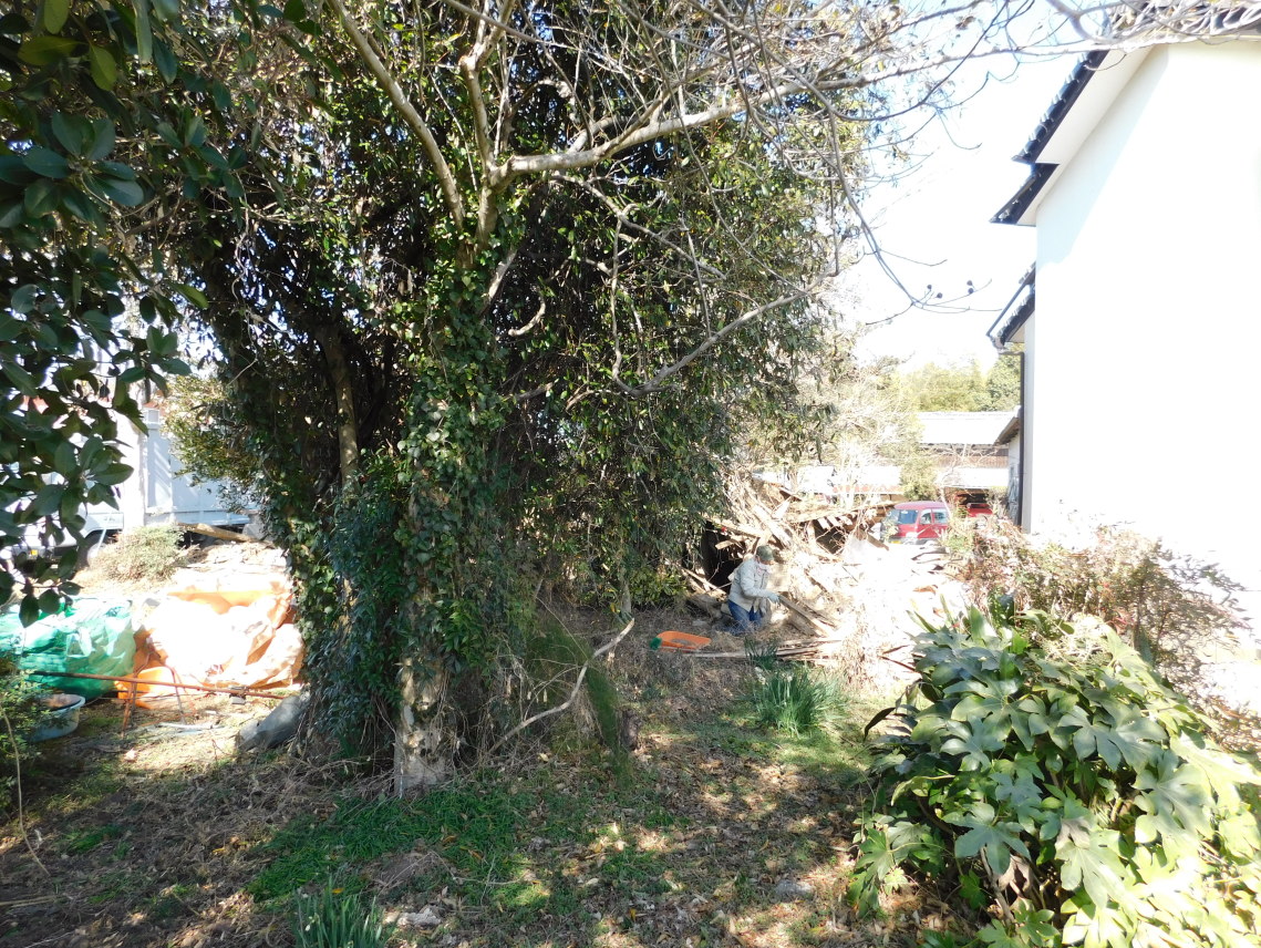 | 庭の木々:山椒、にっき さくらんぼ 柿 橙 椿 南天 紅葉 ぼけ 山吹 すいせん 松 盆栽 等 |