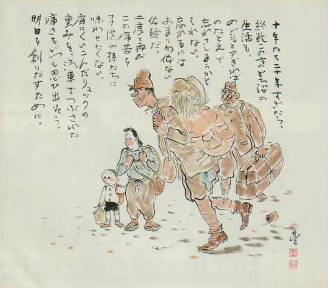 | ノンキナトウサンは、終戦直後にも登場します。作者は「非常時になるとどこからかひょっこり現れて 皆と一緒に苦労しながら生き抜くノンキなようなそして不死身な変なおやじ」と述べています。 |
